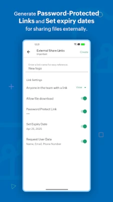 Collaborate with external stakeholders: Create external share links to work with people outside your organization. And you can set a password and an expiry date to the link to ensure secure file access.