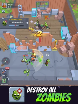 • The best of both worlds - A mix between survival and idle type games, this simulator ticks all the boxes in both of these categories. You get all the instant fun of smashing zombie heads in and fighting off waves of attack, plus the more passive fun of being able to collect tons of resources (55 different types and counting!) and combine them to create new objects. Toggle between these tasks effortlessly for maximum enjoyment.